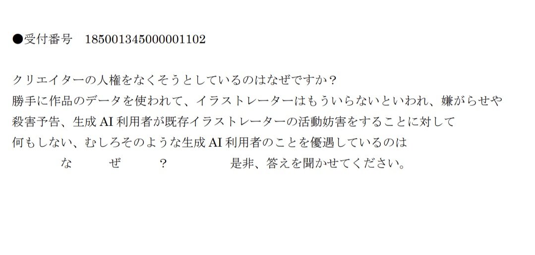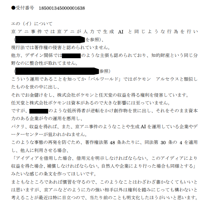 AIみたいにおまいらがwktkするわけでもない業界関係者しか興味がないようなパブコメでも稀に怪文書使いが出没するんだよね こわくない?