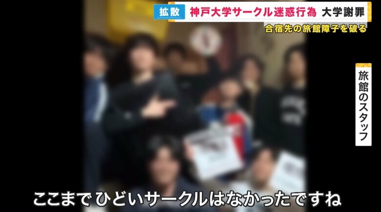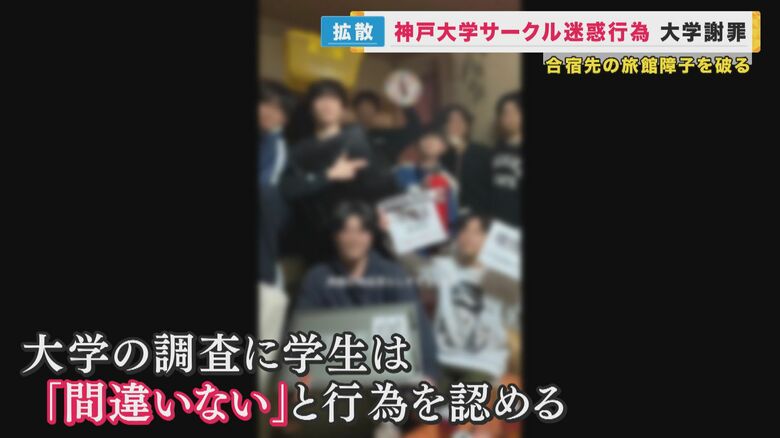 神戸大学のサークルの学生が、旅館の障子を破るなど迷惑行為をした動画がインターネットで拡散。神戸大学は謝罪し、調査を進めている。