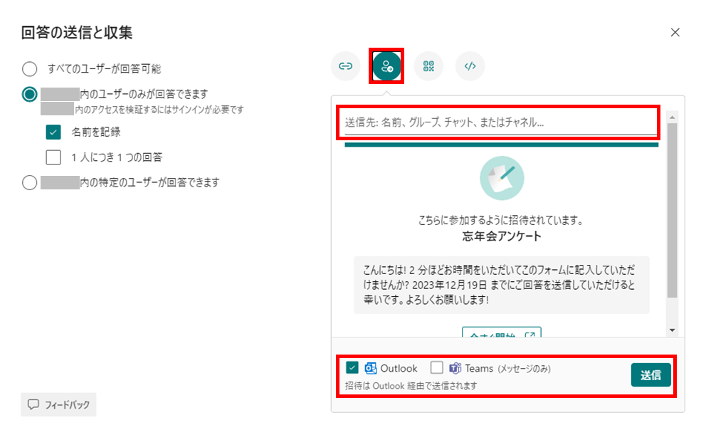 回答者へのフォーム共有