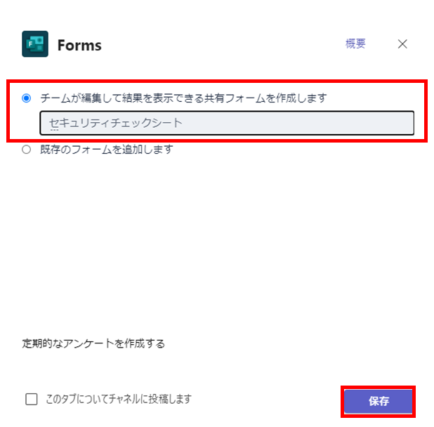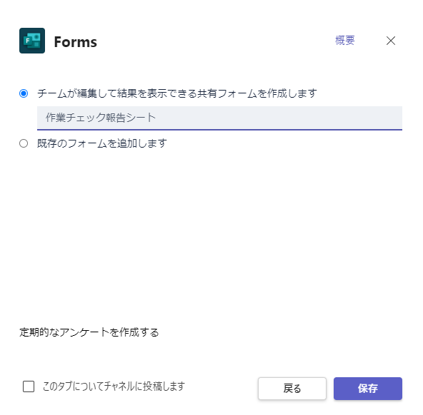 ②Teamsからフォームを作成する