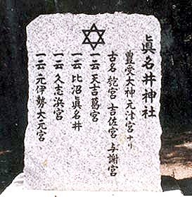 それが、かつて地中に埋まっていた古い石碑を掘り起こして新しく作った石碑があり、これには真名井神社の由緒が彫られているのですが、上部には、なぜかイスラエル国旗のシンボルと同じ「六芒星」が刻まれています。