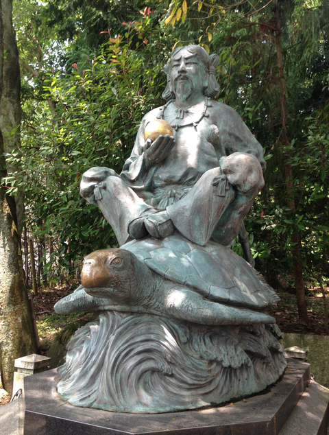 また一方の「亀」を象徴するのが、やはり籠目や六芒星でもある「籠神社」であり、籠神社の社伝には、海亀に乗った「倭宿弥命(やまとのすくねのみこと)」という祖神も登場してきます。