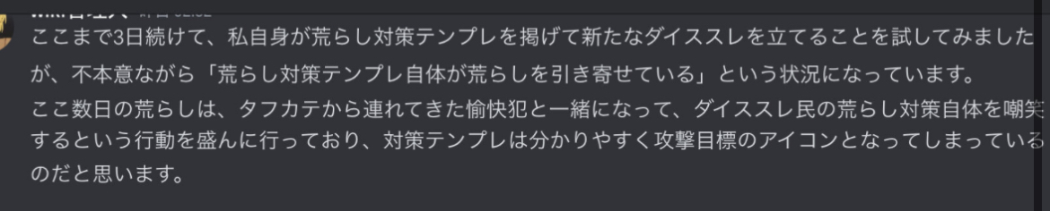 ダイススレ荒らされて悲しいわ