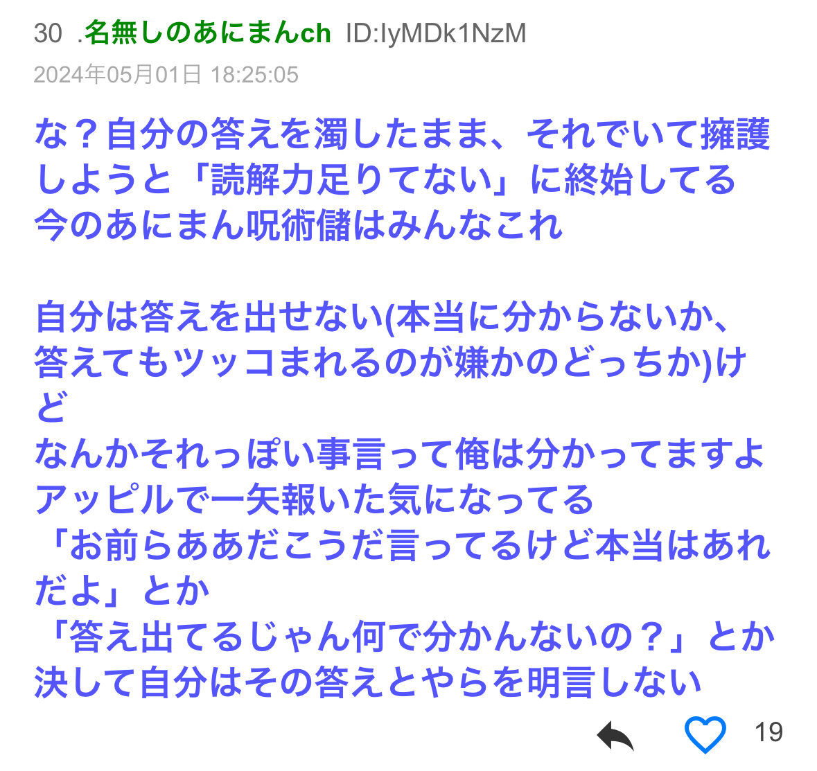 問題は何故か確信持ってるやつに限って攻撃的なことなのん - 79二次元好きの匿名さん24/05/01(水) 20:24:20
