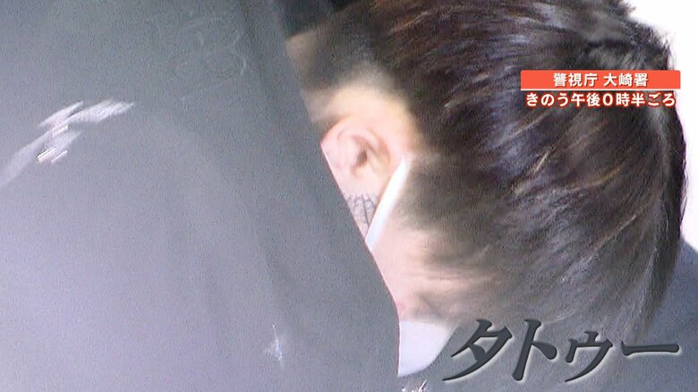 移送された際の映像を見ると、耳の下辺りにタトゥーらしきものが確認できます。