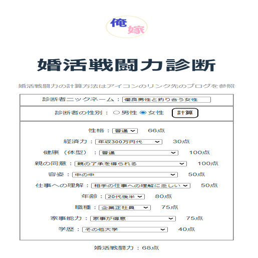 今回も自作した婚活戦闘力診断を元に話を進めていきます