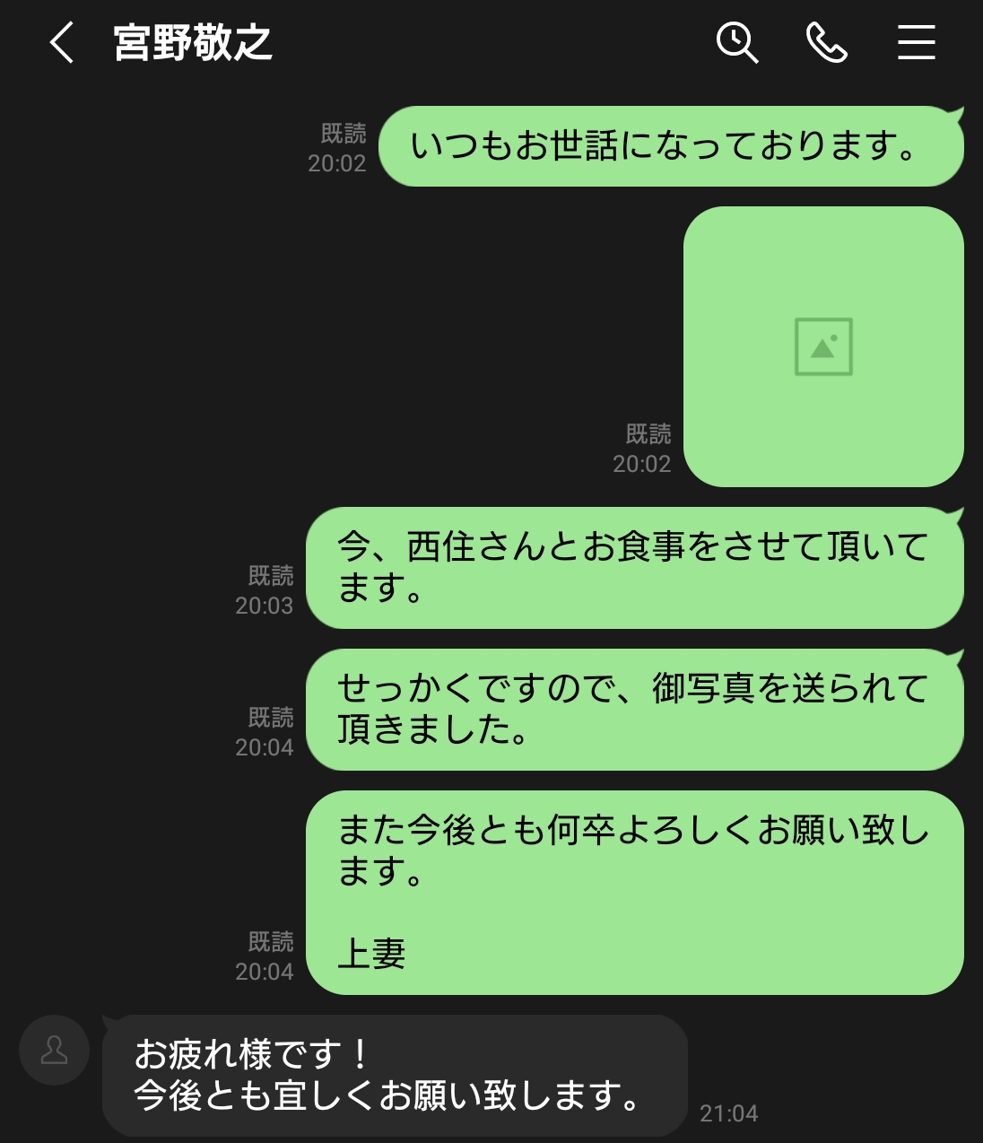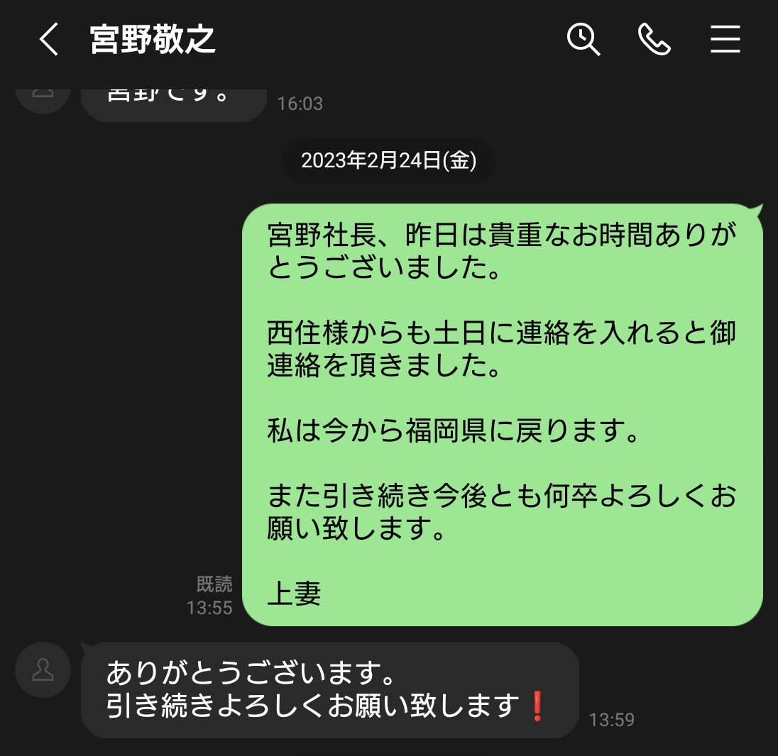 西住氏と会えたと宮野社長に報告する私