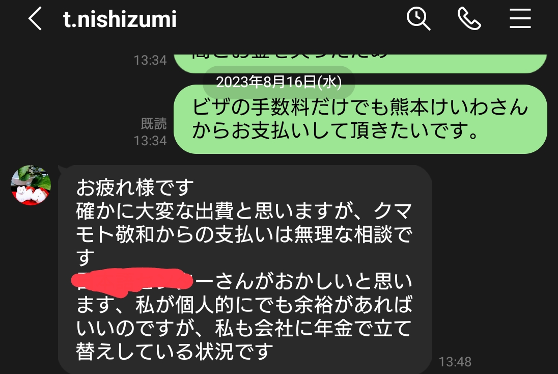 結論としては、熊本敬和から時間とお金だけを奪われて、支払い催促をしていまたが、倫理的解決は難しいと判断しました。