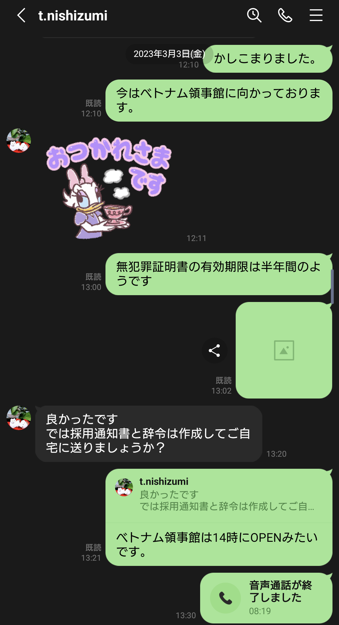 帰国してから6月〜8月と待機させられて。1月31日に西住さんにベトナム就職の相談をして半年以上経過しており、私自身も焦っていました。そんな時に出張ビザの代行依頼した業者から私宛に代行請求の支払いが届きました。
