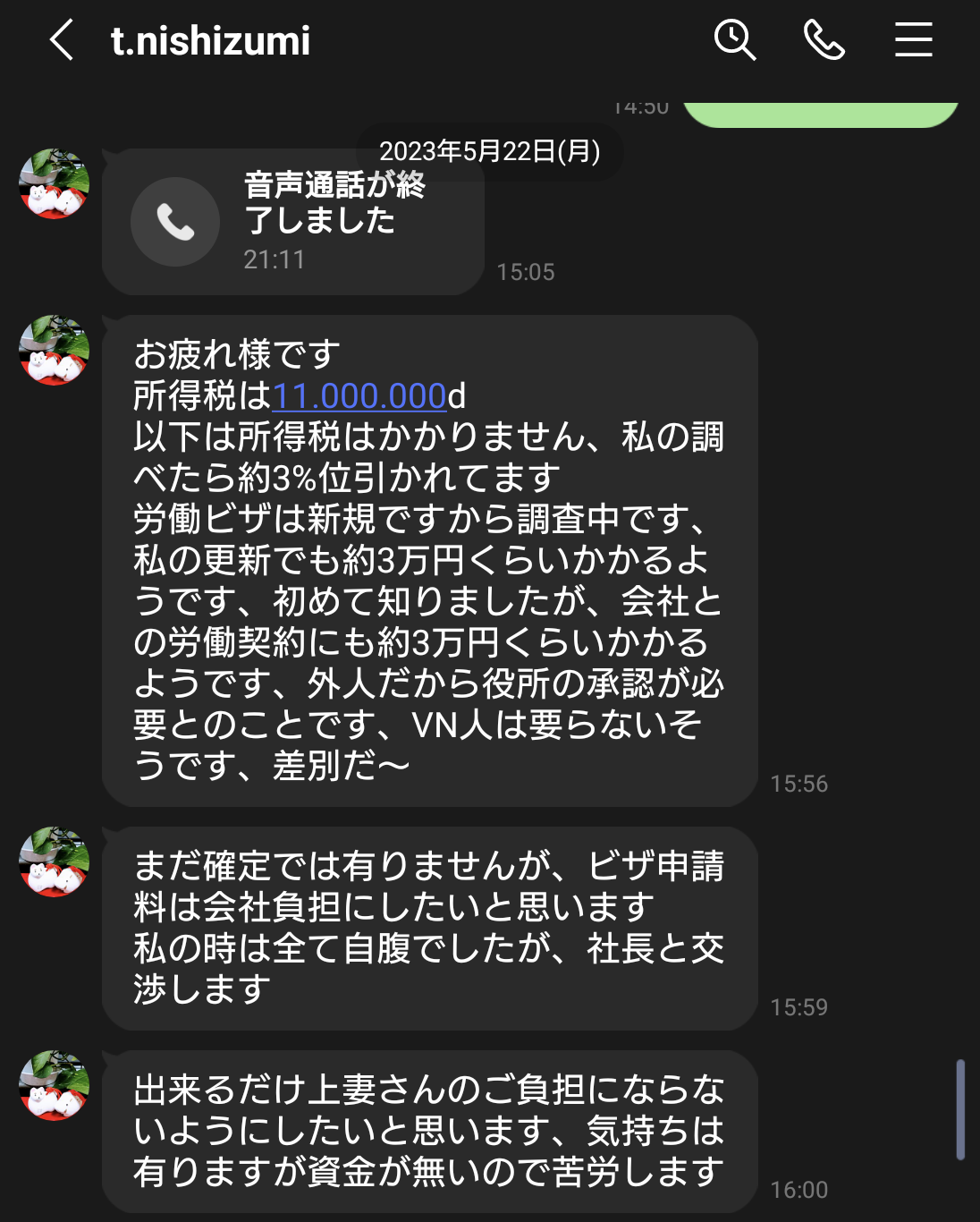 労働ビザ申請のために1ヶ月頑張ったのに、西住さんから電話で「今回は出張ビザで来てほしい」と言われる