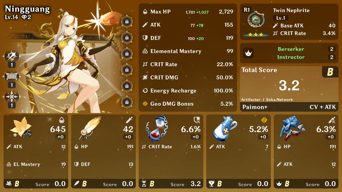 My current build. used Genshin Optimizer but didn't get it. (pics made with Artifacter.) pic.twitter.com/Z2XIflvevT