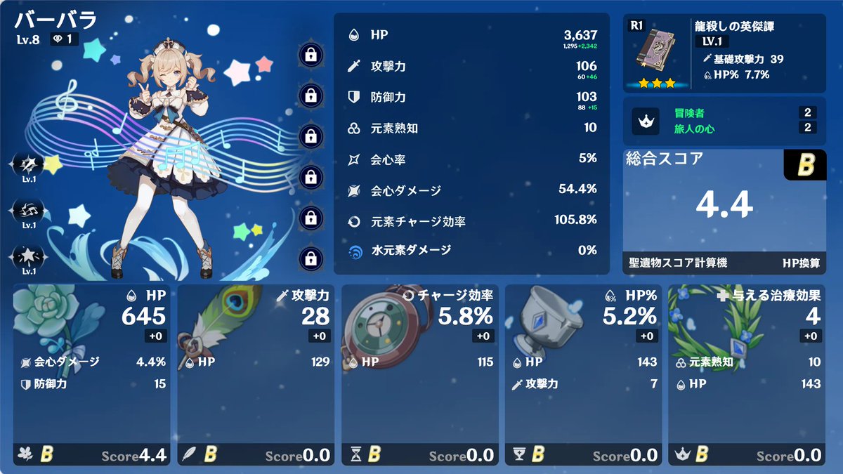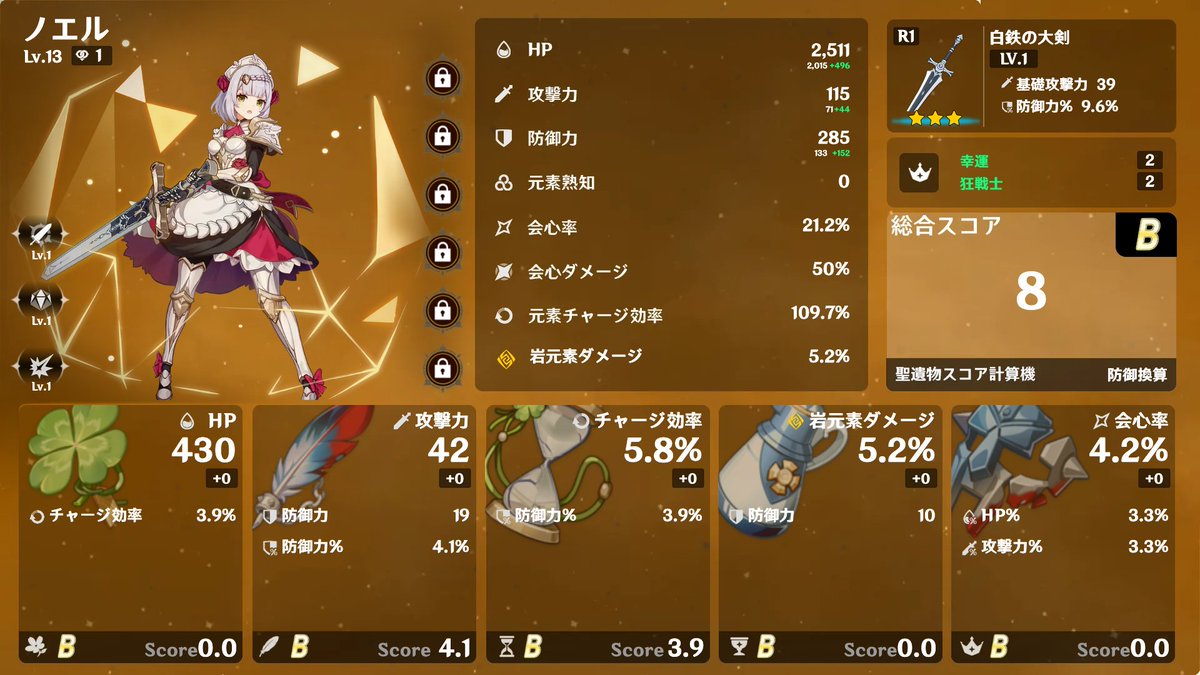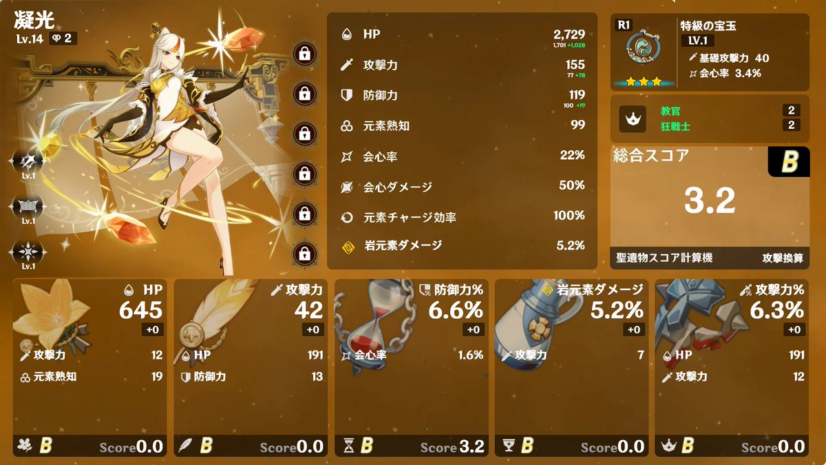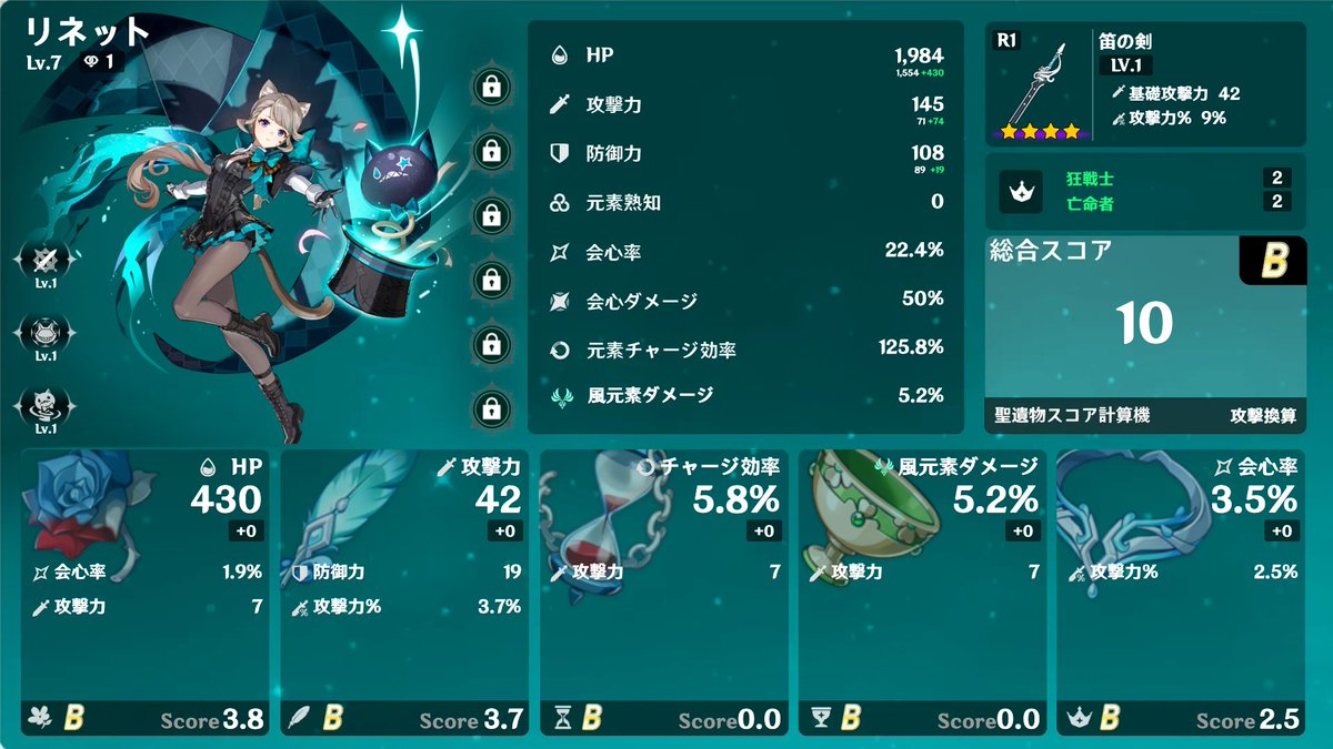 今の構築。 Genshin Optimizerというツールで計算したがよくわからなかった。 (この画像はArtifacterというツールで生成。) pic.twitter.com/dWYW8BRApw x.com/yuuki26/status…