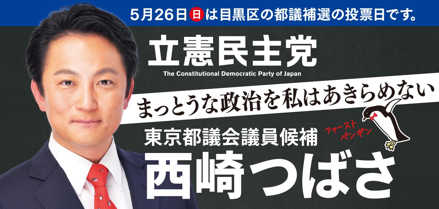 だったら、私がファーストペンギンになります。新しい時代の政治を切り拓いていくため、誰よりも先に行動を起こし、抵抗勢力にぶつかろうとも、ブレずに進んでいきます。ペンギンに翼はありませんが、私は「つばさ」です。この目黒の地から力強く羽ばたいていく決意を胸にして、今日も活動しています。