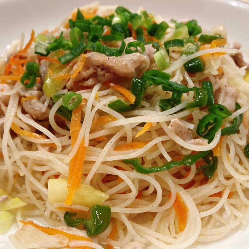 豚肉(250g)に塩コショウと酒、ごま油を揉みこんで、片栗粉(大さじ1)をまぶす