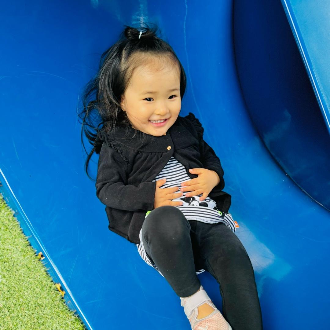 休日の朝は、平日に散歩に行けない娘と一緒にモモちゃんのお散歩
