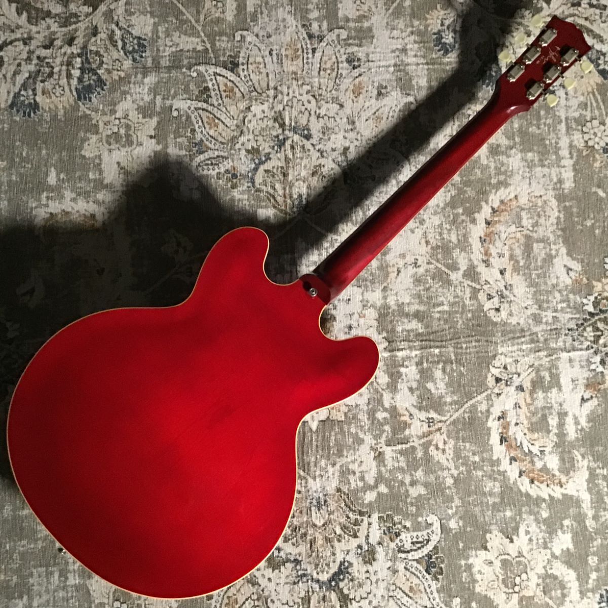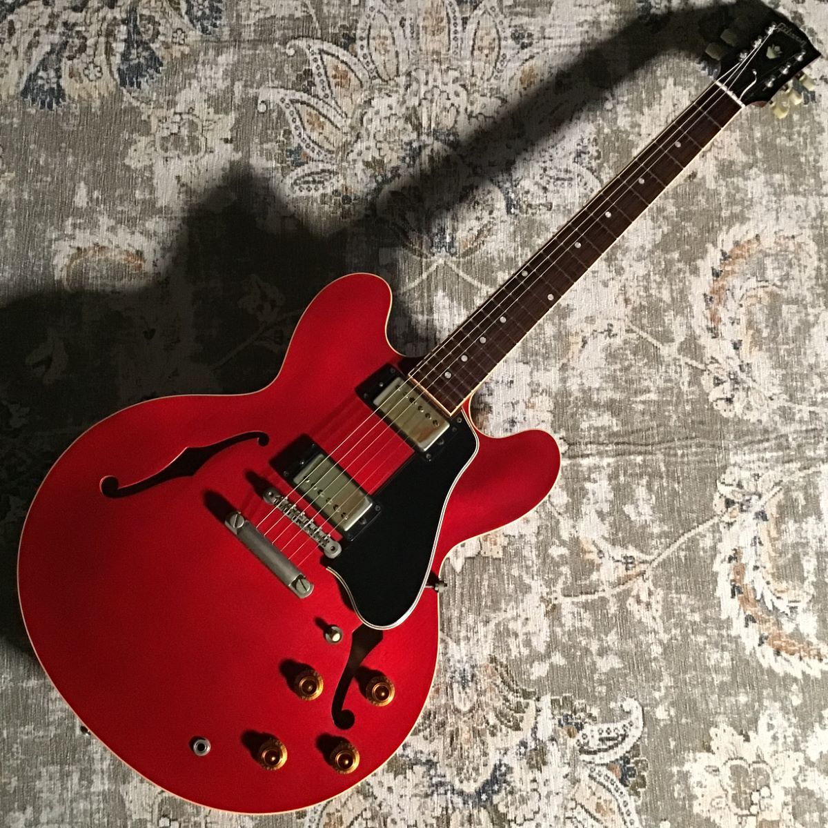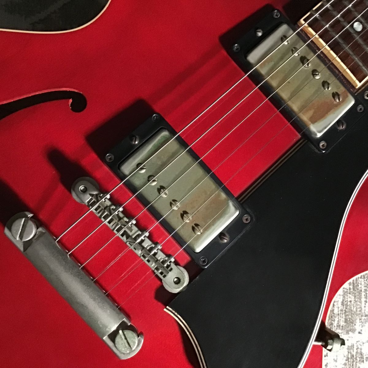 2002年 CustomShop製。PoliceのAndySummersのシグネチャーモデルで、本人所有の1960年製ES-335を模しています。ネックは’60らしいスリムで握りやすい形状に指板はドットポジション。ボディは鮮やかさの中に少しくすんだ雰囲気ももったフェイデッドチェリーレッドです。