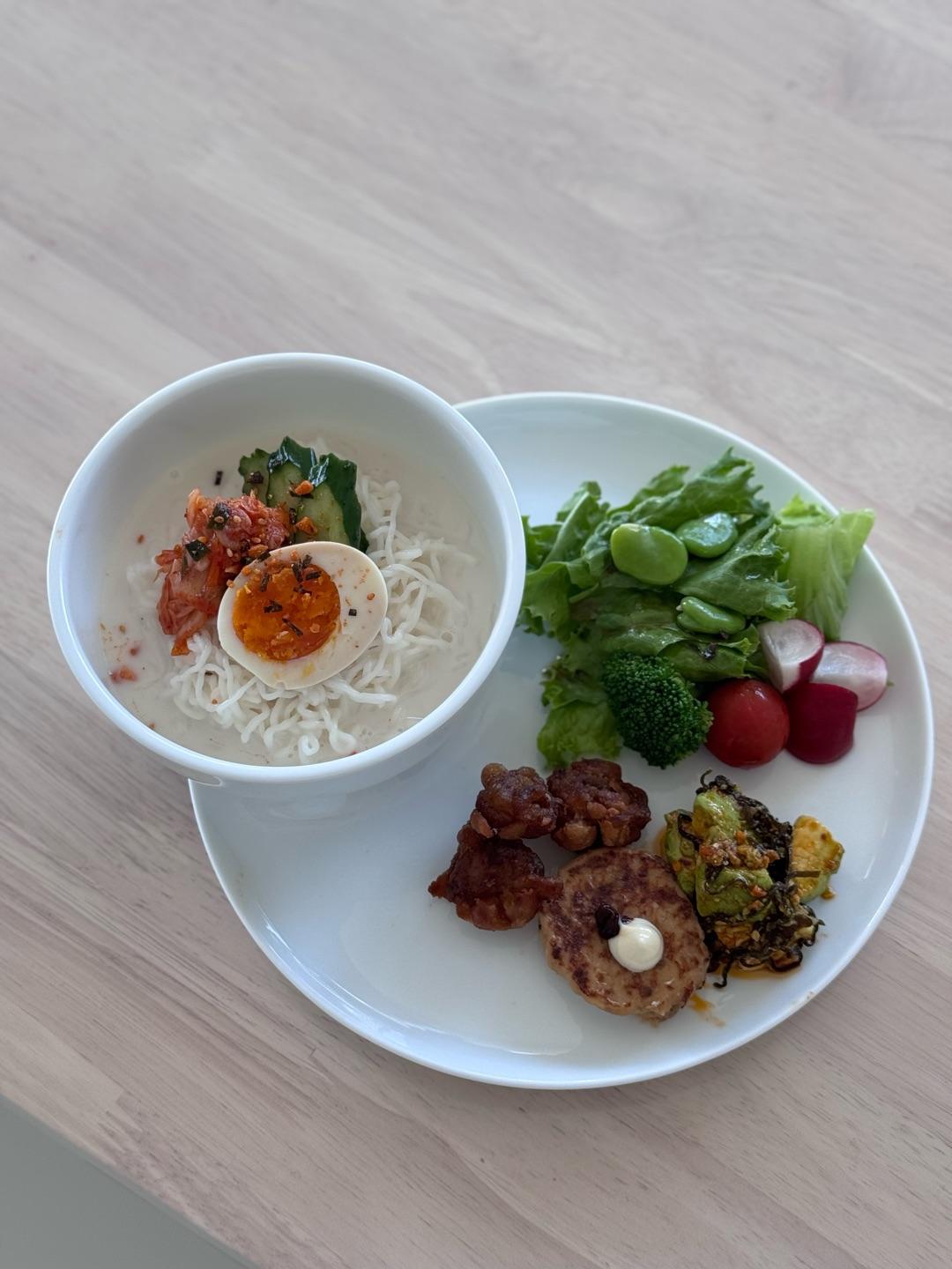 鶏ハムと塩サバ定食の完成