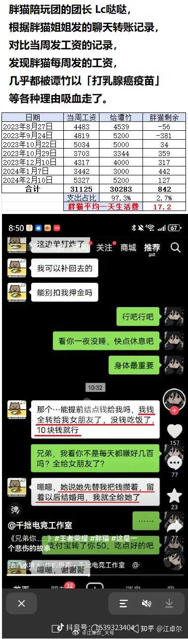 根据胖猫姐姐发的聊天转账记录,