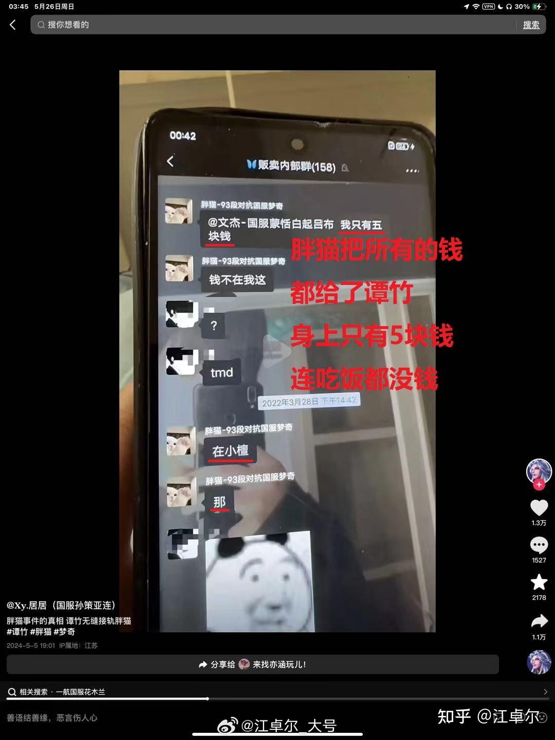 这事彻底终结了,至于什么说他们春秋笔法偏向谭竹,本来想解释,后来一想没必要,对牛弹琴是最傻的事,不是不懂是不想懂,这些人哪怕你掰开了揉碎了也不想懂,让他们继续算数学题去吧