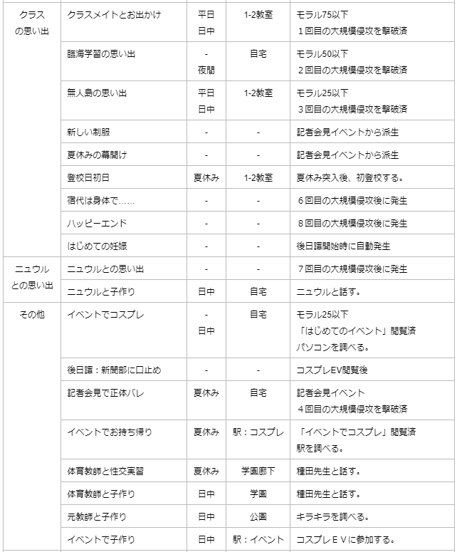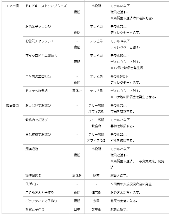 ・戦闘後、記者会見を開くことができ、モラル50以上なら処女ルートを選択可。