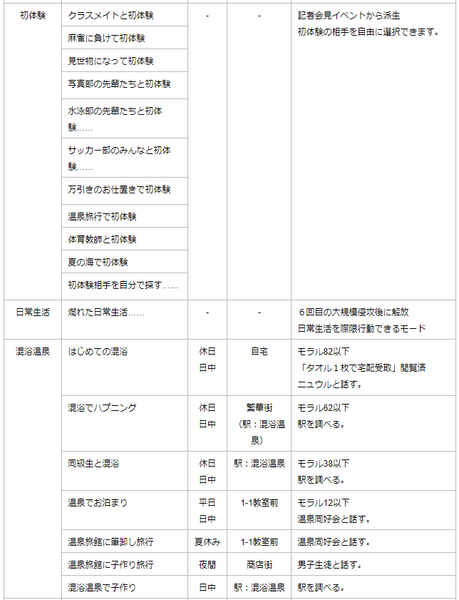 基本的にはここで初体験イベントが発生し、初めての相手を選ぶ(選ばなかった相手は回想で)