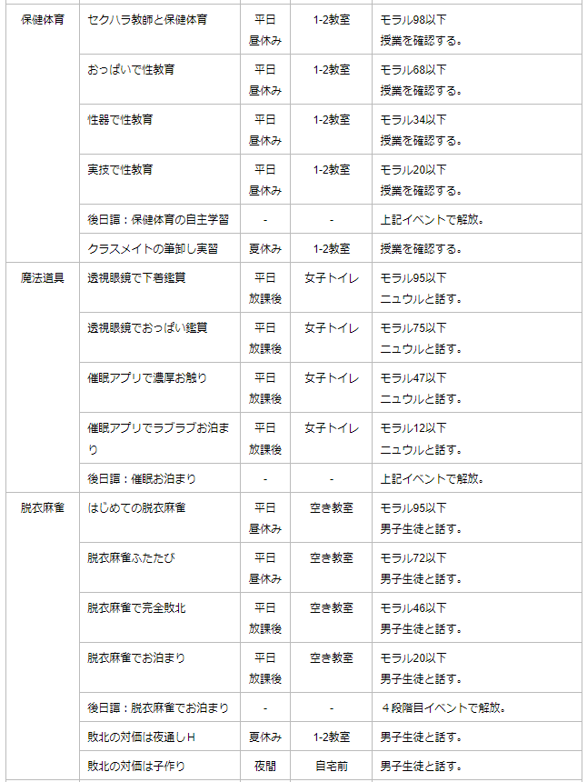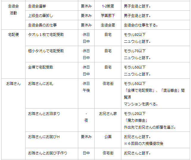 ・処女ルートはモラル50以下にならないことが必須。