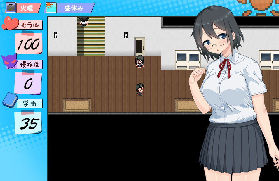 日数が経過とともに上昇する侵攻度が100になるまでは、日常パートで露出行為を行うことになる。