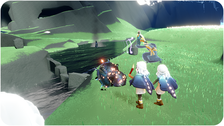 2、在《光·遇》世界里,玩家通过找寻先祖推进剧情,通过收集烛火铸成蜡烛,用蜡烛与好友互送爱心,兑换先祖的赠礼。