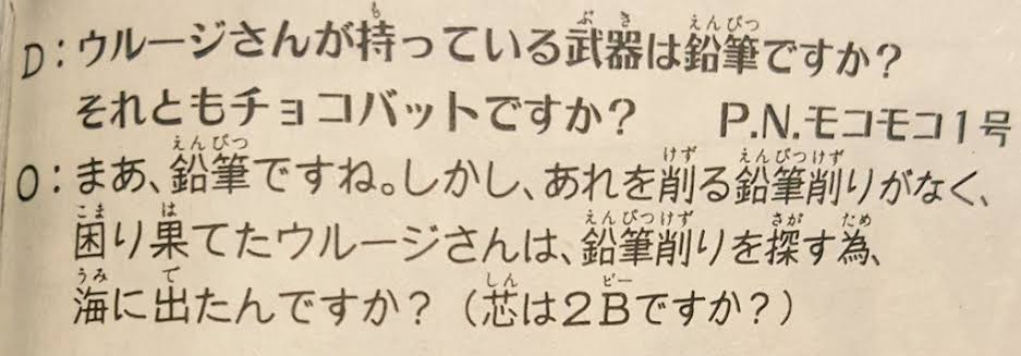ウルージさんの持ってる鉛筆の正体を教えてくれよ