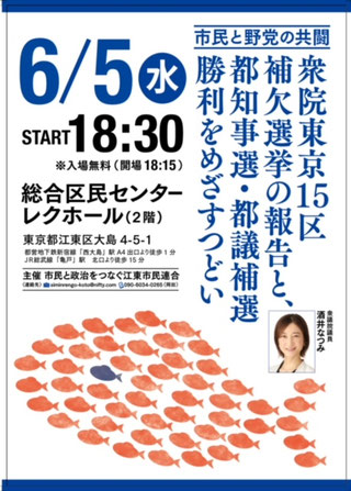 候補者選定委員会は、2月にスタートし、各党、各団体から提案された対象者に優先順位を付け交渉を繰り返してきました。「出したい人」になかなか受諾をいただけない中、5/27の5回目の候補者選定委員会にて、蓮舫氏選定に至ることが出来ました。蓮舫氏は、当会HPにおける推薦募集でも、選定委員会でも期待の声が多かった対象者でしたが、決断に至るのは簡単ではなかったようです。東京新聞のスクープ記事が先行したため、以前から決まっていた候補者選定委員会の直前に急遽記者会見という 逆転現象が起きたのは残念でしたが、候補者選定作業はなんとか間に合いました。これからが勝負です。