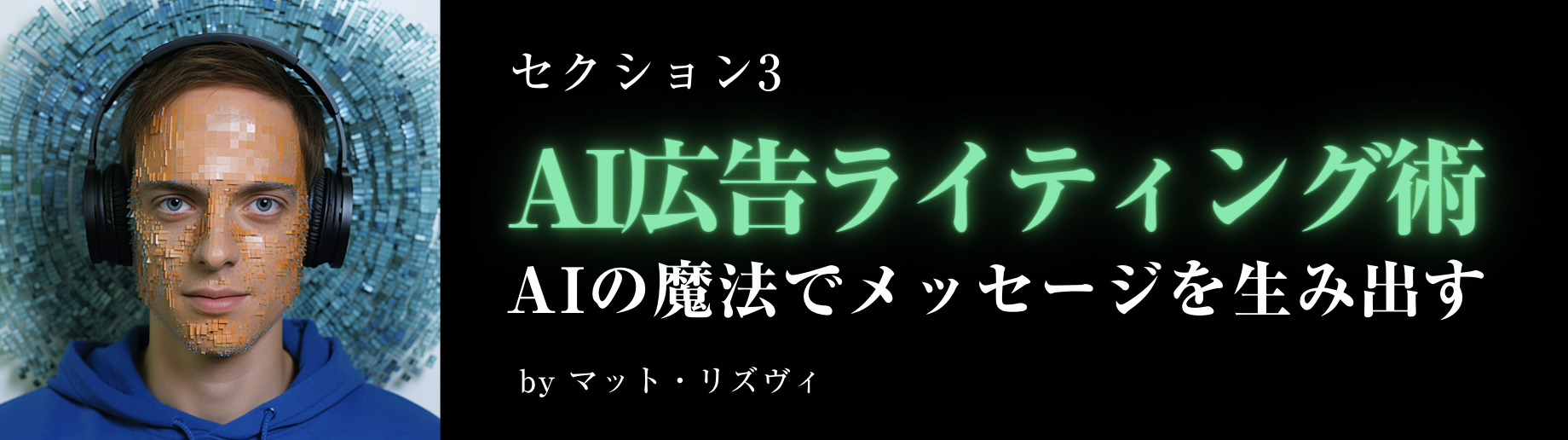 セールスは、心を打ち、行動を起こさせる魔法のアートです。セクション2「AIセールスレター作成術」では、オンライン広告業界の革命児があなたに、その秘訣を明かします。世界中でセールス動画(3XVSL)を広め、AIを使ったライティングの研究に数年を捧げた第一人者による、ChatGPTを活用したセールスレターや動画スクリプトの作成手順を公開します。