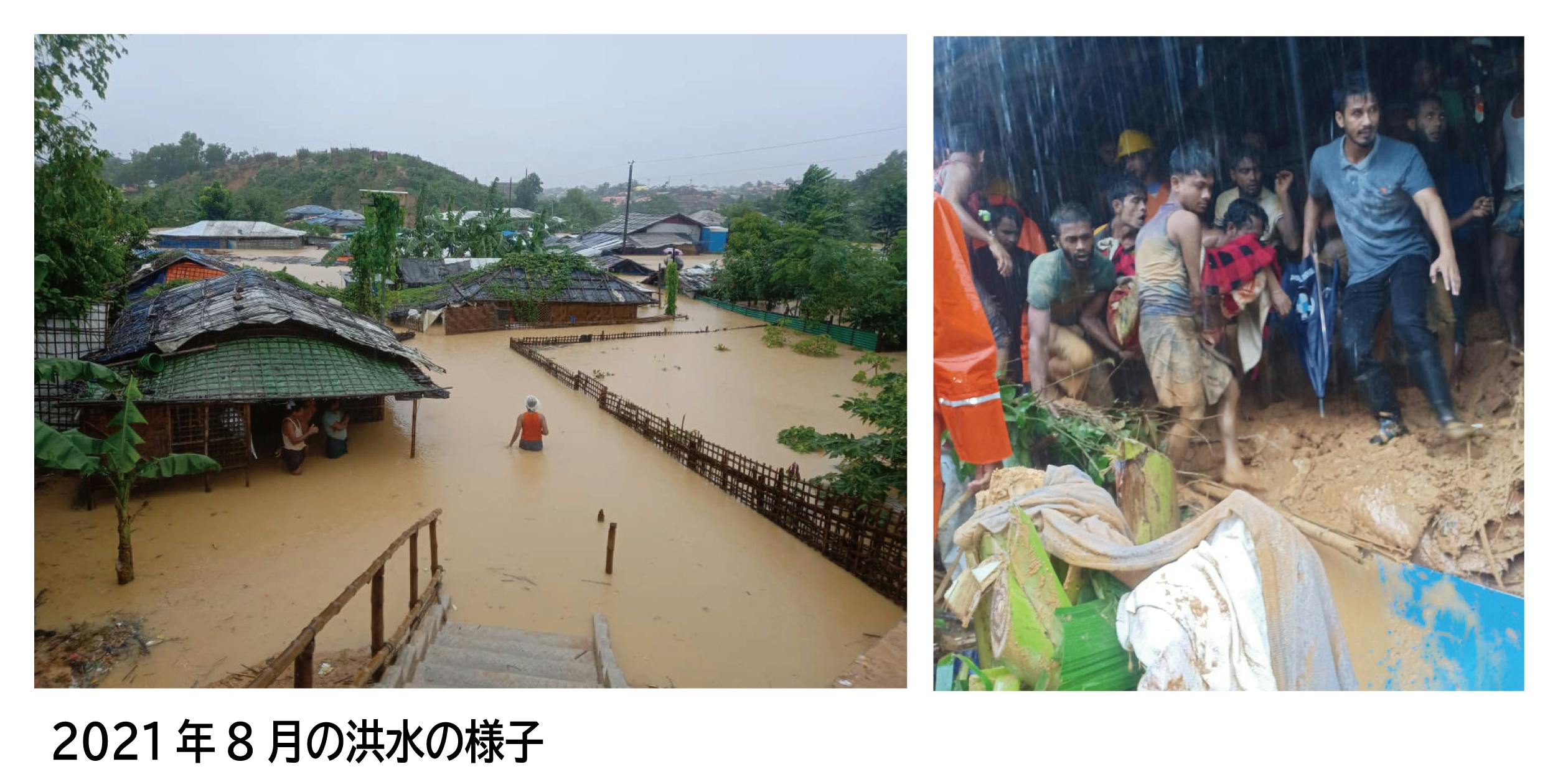 難民キャンプには、毎年雨季に大きな台風(モンスーン)が来ます。地球温暖化の影響でその規模は毎年大きくなり、被害も大きくなっています。台風の季節になると、「学校の床が水浸しだ」「屋根がこわれて子どもたちが勉強できない」と現地から写真が送られてきます。