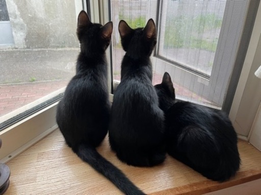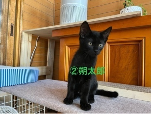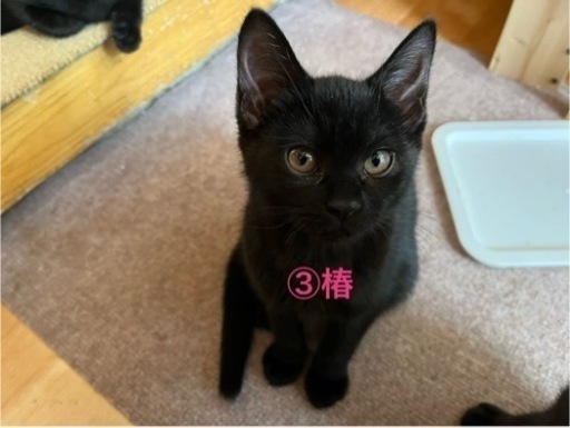 ◆性格や特徴①福太郎 オス 人懐っこい性格で甘えん坊。抱っこも大好きです。②朔太郎 オス おっとりな性格だけど、抱っこするとすぐゴロゴロいいます。③椿 メス おてんば娘で猫じゃらしが大好き。自分から抱っこしてと言ってきます。◆健康状態まだ寒いのに産まれそうなお腹の外猫がいて、外で産まれたら死んでしまうと思い、暖房を設置して玄関で生まれました。なので一度も外に出たことはなく、今はお母さんとも離しお部屋で元気に遊んでいます。よく食べ、よく寝て、よく遊んでいます。◆その他寂しいのはかわいそうので、出来れば複数匹で育ててくれるか、優しい先住ネコがいるお家がいいなと思っています。よく遊んでくれる飼い主さんがいいです。完全室内飼いでお願いします。譲渡条件・ペット可の住宅にお住まいの方・同居のご家族全員が飼育に同意していること・適切な医療を受けさせてくださる方・適齢になりしだい避妊・去勢手術を行なっていただける方・60歳以上、一人暮らしの方は後継人がいること・未成年、無職の方からのご応募はお断りさせて頂きます・たまにでいいので写真付きで近況報告をしてくださる方