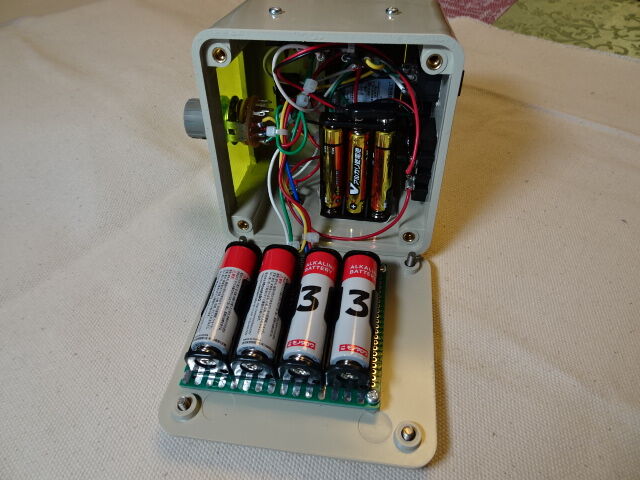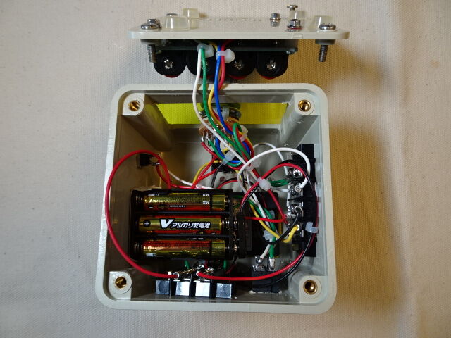 ケース(BOX)の加工に時間が掛かりました。ケースは廃品の中継BOXを利活用したため、穴が開いており、パッチ当てしながらの製作でした。