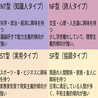 <MBTI基礎解説>SF型・ST型・NT型・NF型の違いについて