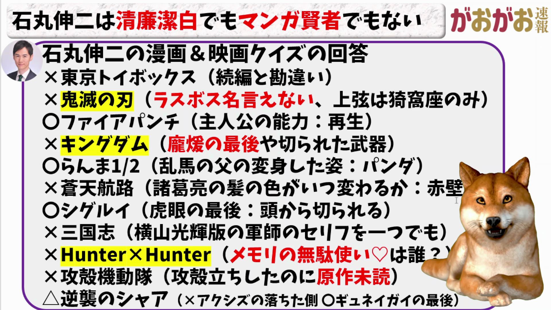 石丸伸二氏のにわかオタクが露呈する形に