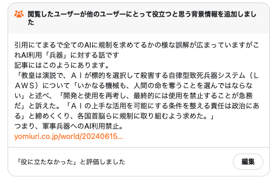 叩きにならないように印象の話をするけどね 無断利用や無断学習でも人命が天秤に乗ってるとまぁええやろって気分になるの - 8二次元好きの匿名さん24/06/28(金) 11:18:42
