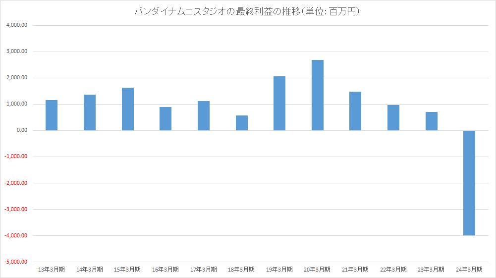 バンダイナムコスタジオがマイナス39億