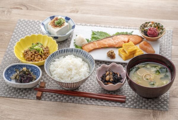 主食はお膳の左に置きましょう。その右側に汁物を置きます。また、箸は手前に置くだけでなく向きにも決まりがあります。箸先は左側に向けるようにしましょう。