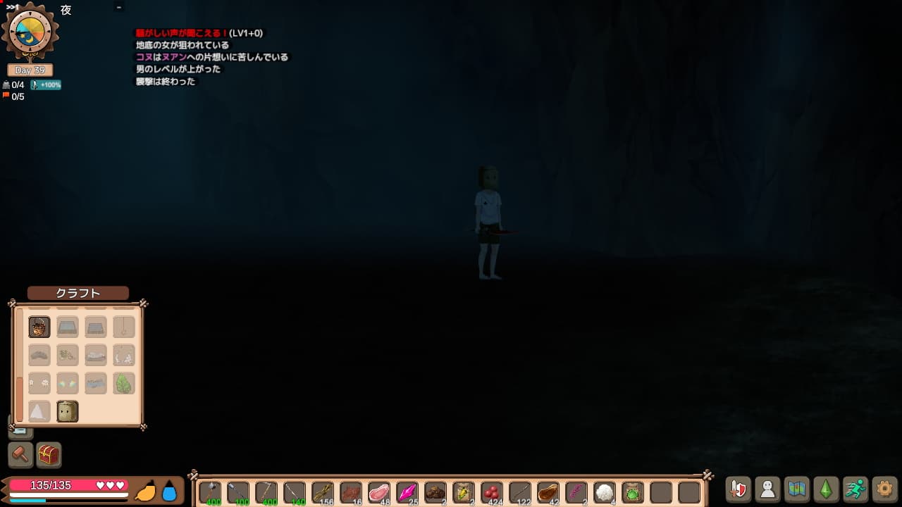しかしながら本作サバイバルクラフトゲームのエッセンスの充実っぷりは本格派といったところで、未開の地を探索するドキドキや拠点を堅固に、自分の思うままに創造する面白さを体験することができます。クラフト要素もゲームの進行自体には関係ないものも沢山あり、女の子に着せる衣装やテーマ性ある家具のようなインテリアが多数用意されています。