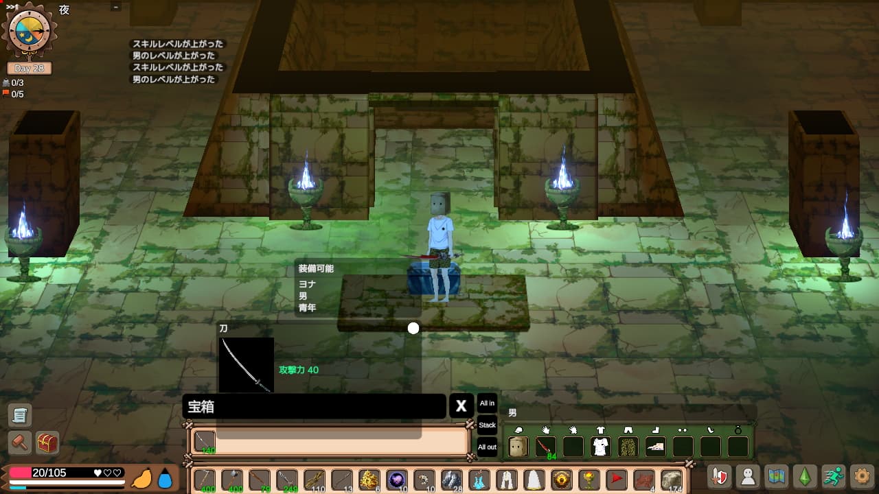 このゲームはクッソ本格的なサバイバルクラフト作品で、島に遭難して漂着してきた男女を切り替えながら操作して少しずつ生存に有利なアイテムを開発していき、原住民だらけの島の中どんどんその存在感を誇示していくという内容です。