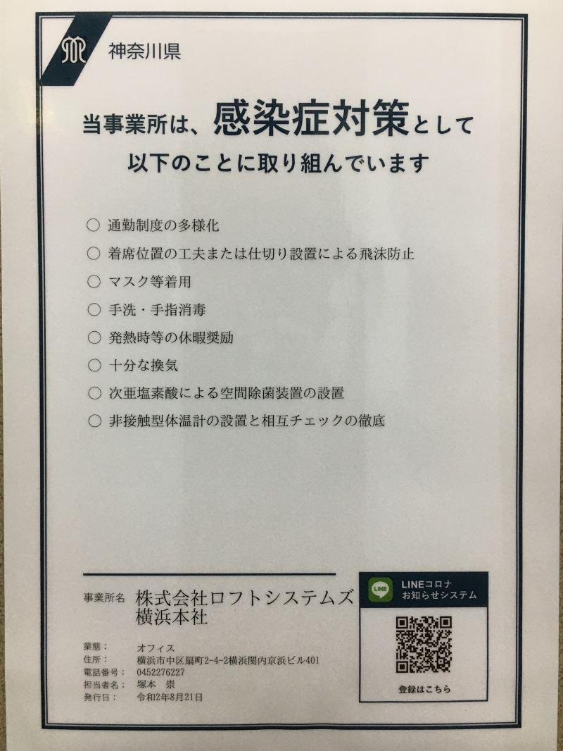 神奈川県が取り組む「感染症防止対策取り組み書」へ登録いたしました。