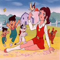 日本初の少女が主役のテレビアニメは大ヒットし、半年2クールの予定が8クール2年間全109話も続き、第18話からはカラー放送になりました。