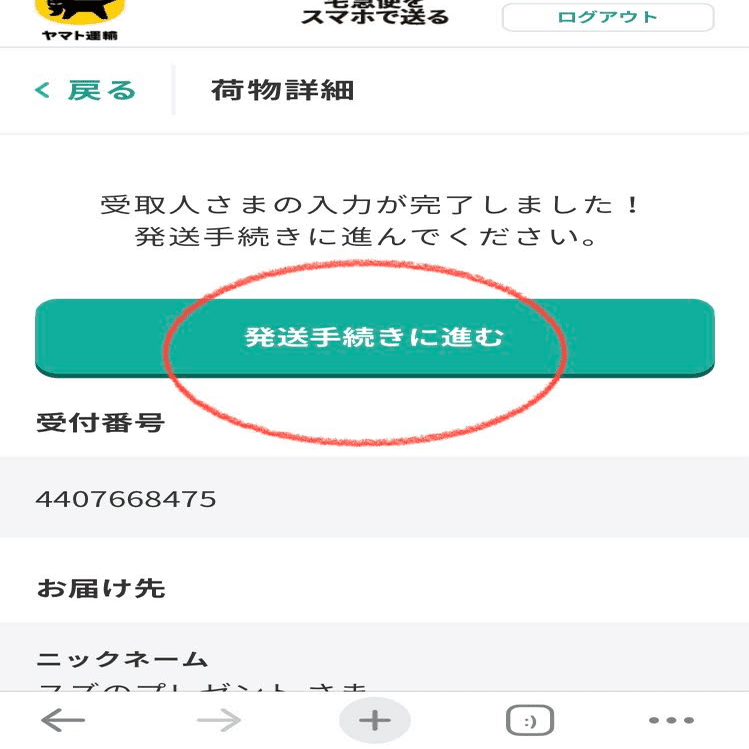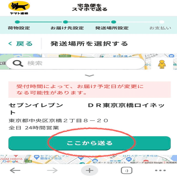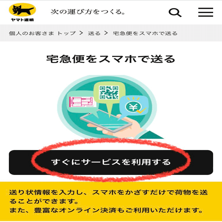 再び、宅急便をスマホで送るのページを開く。
