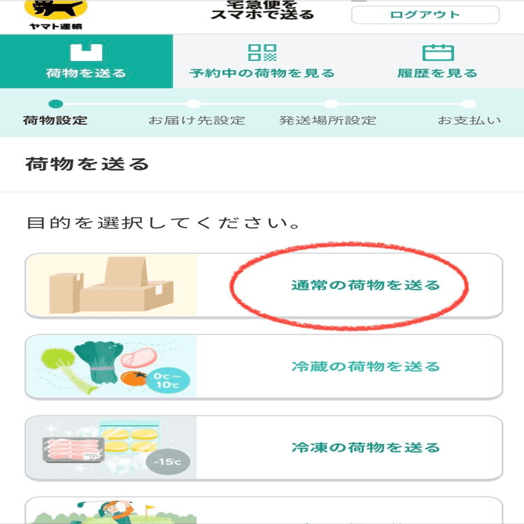 「通常の荷物を送る」をタップ。