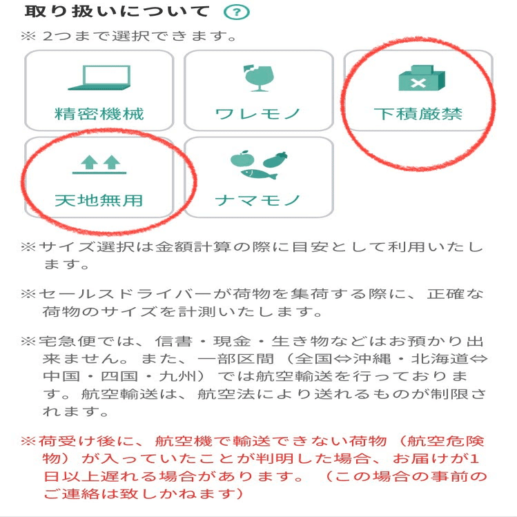 取り扱い注意は、2個まで選択可能。