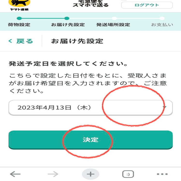 8.発送予定日を選択し、「決定」をタップ