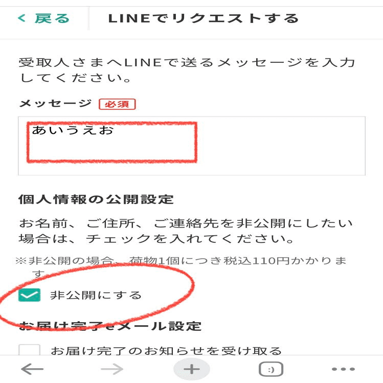自分の住所を知られたくない場合は、「非公開にする」をタップし
