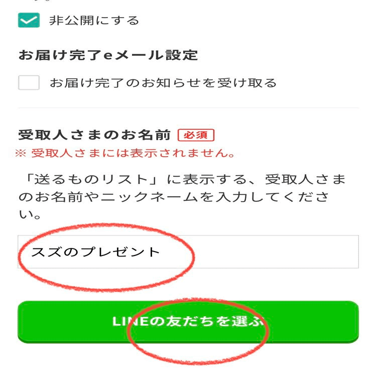 受取人さまお名前を入力。