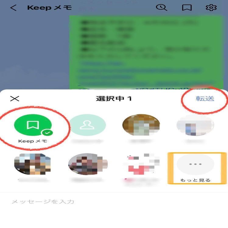 「keepメモ」を選んで「転送」をタップ。